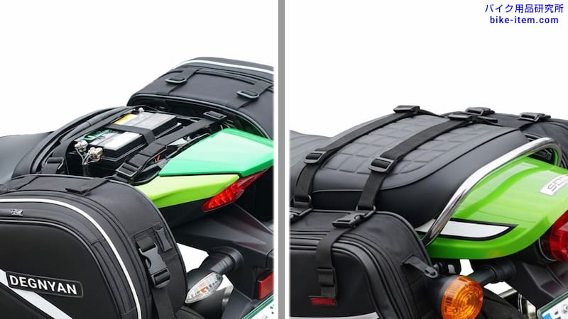 ※小型のサイドバッグは、固定場所がシートの横だけという場合もあります。